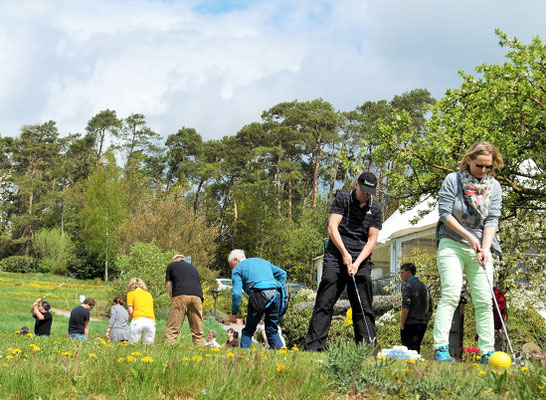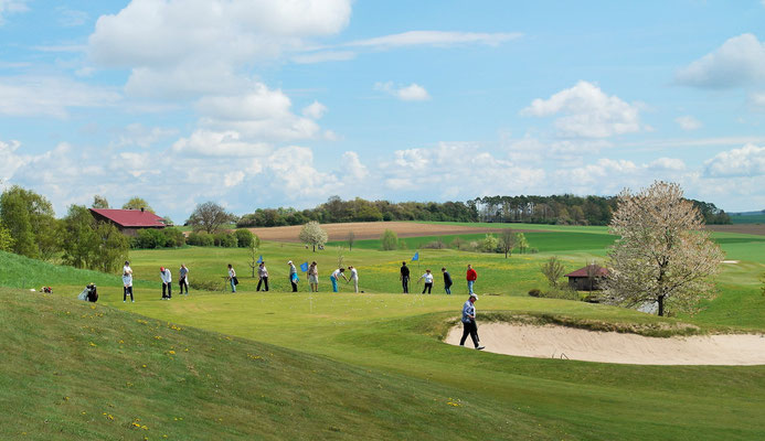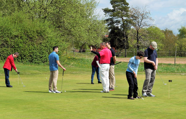 Dort wartet bereits der Golftrainer, der Golf-Neulingen die Grundkenntnisse des Golfens vermittelt. Zuerst auf dem Abschlagplatz um dann das Erlernte auf dem 6 Loch-Platz zu testen.